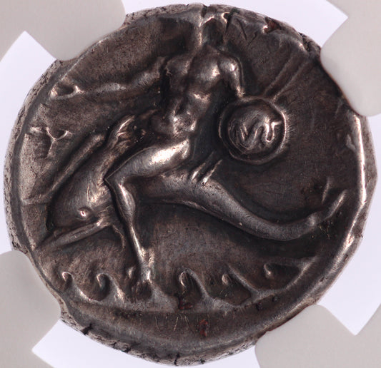 c.280-240 BC Calabria, Taras Didrachm - Horseriders - Dolphinrider