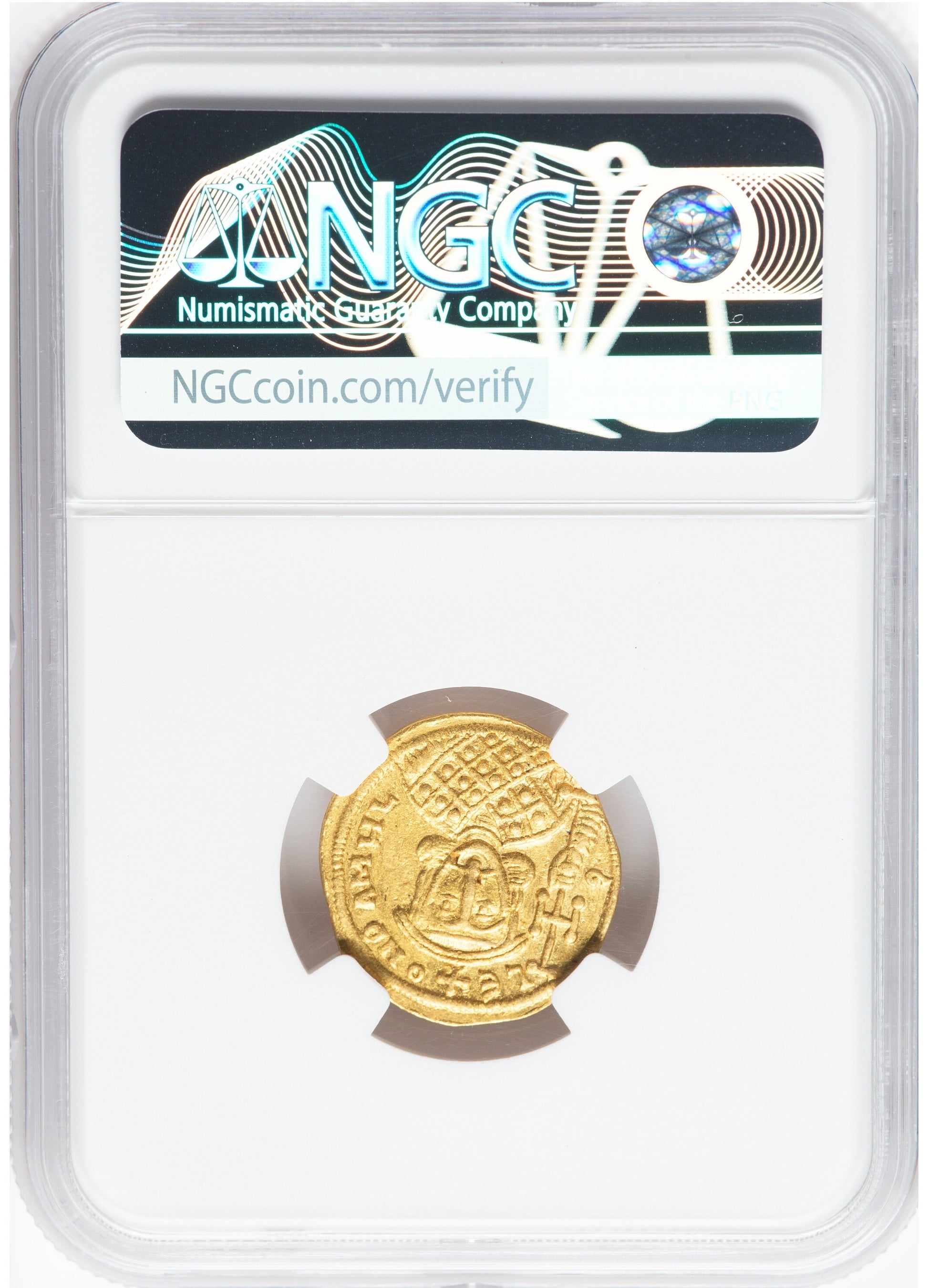 Reverse: Crowned facing bust of Leo III wearing loros, holding cross potent in right hand.